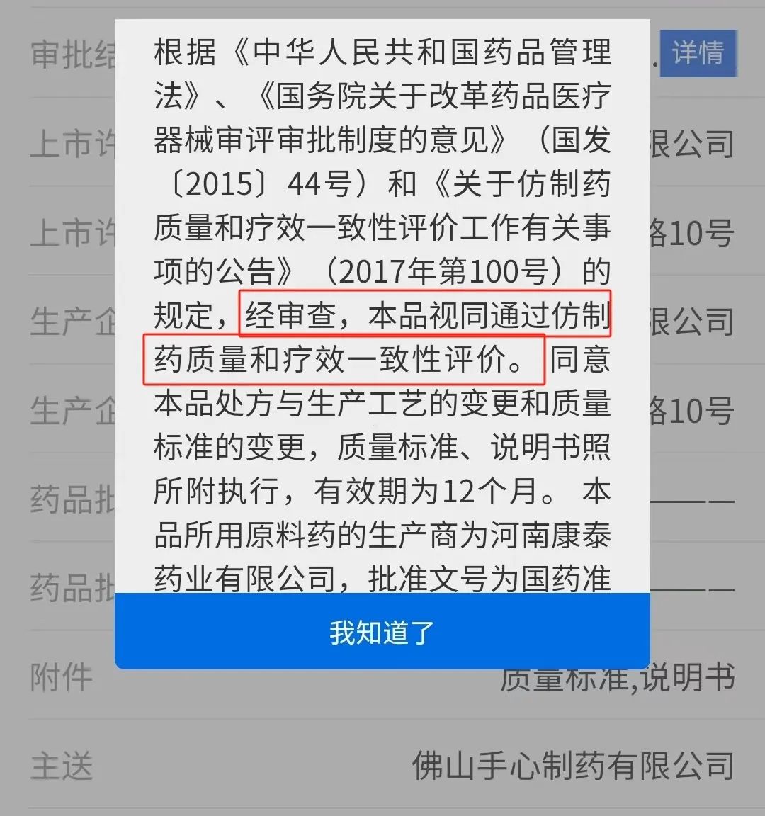 审批结论:本品通过仿制药质量和疗效一致性评价
